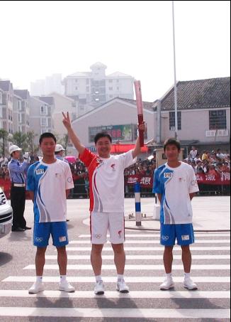 5月17日上午,晴空萬里,2008北京奧運會圣火浙江境內(nèi)火炬?zhèn)鬟f第一站在溫州舉行。氨綸公司副總潘基礎(chǔ)作為第40棒火炬手,身著奧運火炬手統(tǒng)一服裝,高舉火炬,圓滿完成了火炬?zhèn)鬟f任務(wù)。