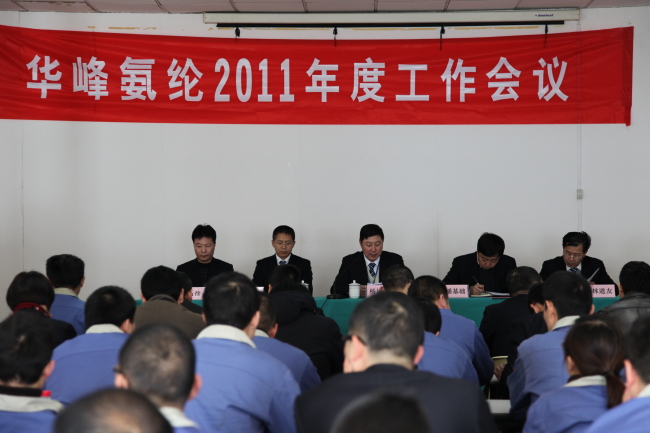 2011年2月14日,集團(tuán)2011年度工作會(huì)議和董事局(擴(kuò)大)會(huì)議后第二天,氨綸公司在莘塍工廠會(huì)議室召開(kāi)2011年度工作會(huì)議。公司總經(jīng)理?xiàng)顝牡亲骺偨?jīng)理工作報(bào)告,公司高管、中層干部及部分班組長(zhǎng)參加會(huì)議。