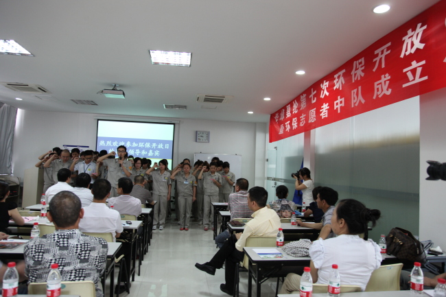“我志愿加入環(huán)保志愿者隊(duì)伍,從我做起,學(xué)習(xí)環(huán)保知識(shí),踐行環(huán)保方法,監(jiān)督破壞環(huán)保行為,積極參與環(huán);顒(dòng),以維護(hù)環(huán)境促進(jìn)企業(yè)和社會(huì)建設(shè),為環(huán)保事業(yè)盡自己最大的努力。” 三十多位環(huán)保志愿者代表莊嚴(yán)地宣讀了自己的環(huán)保誓言。這是華峰氨綸公司第七次環(huán)保開(kāi)放日活動(dòng)令人振奮的宣誓場(chǎng)面。