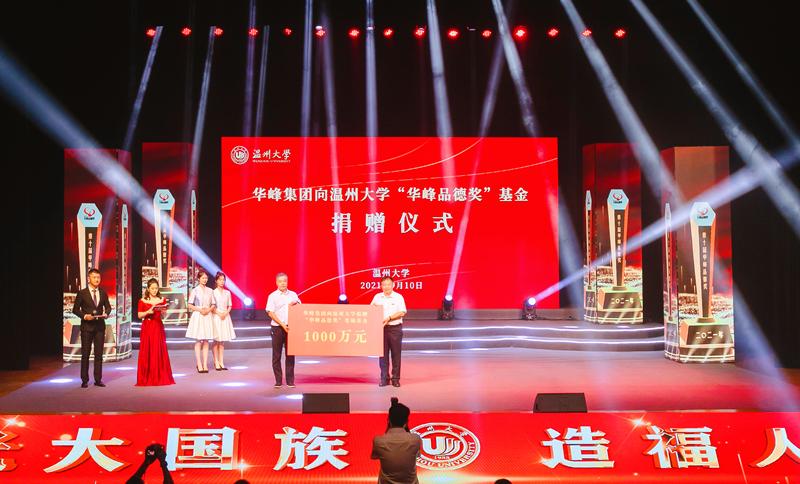 尤飛宇指出,經(jīng)過(guò)10年的發(fā)展,溫州大學(xué)“華峰品德獎(jiǎng)”已經(jīng)成為一個(gè)具有知名度的公益品牌,贏得了社會(huì)各界的充分肯定。為此,他還帶來(lái)一個(gè)好消息:華峰集團(tuán)將在原來(lái)設(shè)立的1000萬(wàn)元品德基金基礎(chǔ)上,再追加1000萬(wàn)元,一如既往地支持溫州大學(xué)的德育工作,進(jìn)一步加大對(duì)道德模范的激勵(lì)和褒獎(jiǎng)。通過(guò)此次捐贈(zèng)表明,在下一個(gè)十年,“華峰品德獎(jiǎng)”將繼續(xù)成為弘揚(yáng)溫大“厚培德本”優(yōu)良傳統(tǒng)與華峰“以德為先”人才理念、傳播社會(huì)正能量的精神沃土,深入推進(jìn)校企雙方共同的價(jià)值追求。