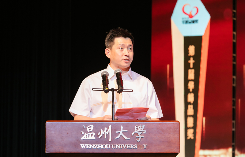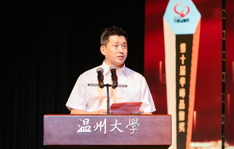 華峰集團(tuán)董事長(zhǎng)尤飛宇在致辭中有感而發(fā),他說(shuō),十年來(lái),“華峰品德獎(jiǎng)”初心未改,不斷發(fā)掘身邊的品德榜樣,用一份份信得過(guò)、學(xué)得到的品德事跡,充分展現(xiàn)了溫大深厚的育人底蘊(yùn)和溫大人的優(yōu)秀品格,為溫大廣大師生和社會(huì)各界樹(shù)立了鮮活榜樣,也為企業(yè)加強(qiáng)員工道德實(shí)踐及教育最具說(shuō)服力的鮮活教材。他號(hào)召大家要與道德同行,向榜樣看齊,共同做文明道德風(fēng)尚的傳播者、踐行者和引領(lǐng)者,用生活中的每一件善舉,匯成崇德向善的時(shí)代潮流。