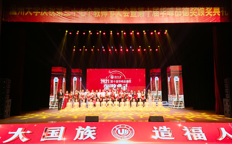 9月10日下午,溫州大學(xué)慶祝第37個(gè)教師節(jié)大會(huì)暨第十屆“華峰品德獎(jiǎng)”頒獎(jiǎng)典禮在育英大禮堂舉行,近千名溫大師生代表齊聚一堂,共同聆聽(tīng)獲獎(jiǎng)代表的感人事跡,共同見(jiàn)證溫大“品德之花”再次綻放。