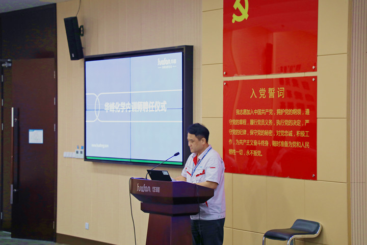7月15日上午,華峰化學(xué)公司首屆內(nèi)訓(xùn)師聘任儀式在集團(tuán)辦公大樓階梯教室舉行。公司總經(jīng)理朱炫相、企業(yè)管理部經(jīng)理李娟及各受聘內(nèi)訓(xùn)師參加了此次聘任儀式。