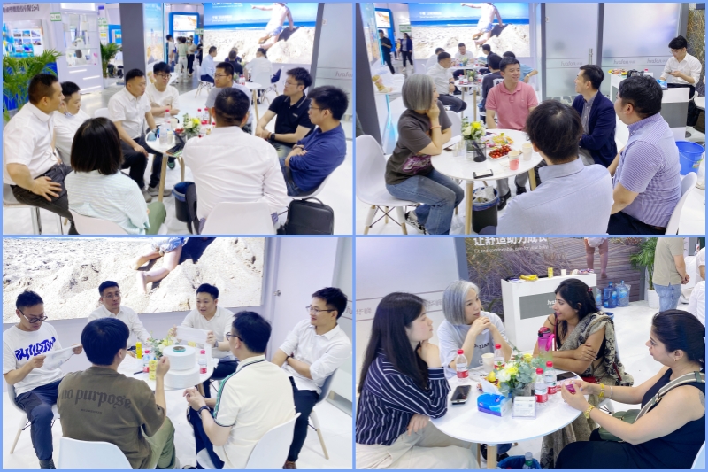 展會(huì)現(xiàn)場(chǎng),工作人員向前來(lái)咨詢交流的國(guó)內(nèi)外知名采購(gòu)商和觀眾,詳細(xì)介紹了產(chǎn)品的特點(diǎn)以及應(yīng)用方向。憑借著優(yōu)越的產(chǎn)品品質(zhì)、專業(yè)的技術(shù)服務(wù),華峰化學(xué)展位前觀眾絡(luò)繹不絕,人氣爆棚。
