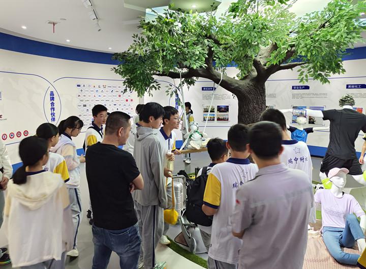活動伊始,40余名學(xué)生及家長齊聚華峰一樓階梯教室,在公司工作人員的帶領(lǐng)下,瑞中附初的學(xué)生開啟華峰集團(tuán)研學(xué)之旅,先后參觀形象展廳、華峰黨建長廊和華峰化學(xué)生產(chǎn)車間。參觀過程中,學(xué)生一行對華峰黨建工作、氨綸絲的生產(chǎn)工藝、車間生產(chǎn)線以及安全設(shè)施表現(xiàn)出濃厚的興趣,紛紛進(jìn)行詢問了解。隨后,學(xué)子們觀摩消防應(yīng)急演練,學(xué)習(xí)并體驗了在緊急情況下的自救互救技能。在座談交流中,首席安全專家朱少正向?qū)W生開展安全知識講座,帶領(lǐng)瑞中附初學(xué)子們進(jìn)一步了解生活中的危險源,增強了他們對安全重要性的認(rèn)識。