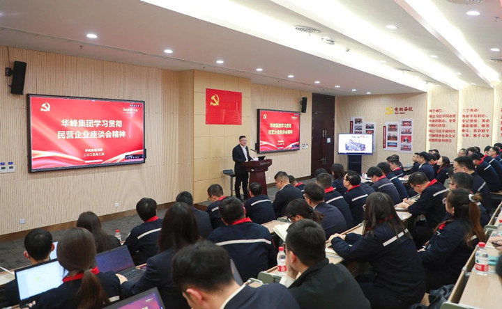 “黨和國家對民營經濟發(fā)展的基本方針政策始終不變,這為民營企業(yè)提供了更為穩(wěn)定的發(fā)展環(huán)境!睍希纸ㄒ淮砑瘓F黨委和董事局作了題為《貫徹民營企業(yè)座談會精神,推動華峰集團高質量發(fā)展》的專題黨課,對民營企業(yè)座談會精神進行了深入解讀,并結合企業(yè)發(fā)展現(xiàn)狀,對集團及集團黨委下一步工作提出了明確的思路和要求。林建一號召與會人員,要認真學習領會、堅決貫徹落實座談會精神,動員引領全體黨員、員工堅定發(fā)展信心,強化全局意識、系統(tǒng)觀念、法治精神,將學習成果貫徹落實到企業(yè)生產經營的各個環(huán)節(jié),轉化為推動華峰集團高質量發(fā)展的強大動力。