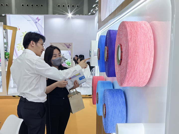 對(duì)于近期比較熱門的細(xì)旦衛(wèi)材專用氨綸,得益于公司開發(fā)成熟、可批量推廣的核心優(yōu)勢(shì),展會(huì)上眾多一線品牌客戶紛紛前來交流,有多家衛(wèi)材客戶達(dá)成試用意愿。同時(shí),不少客戶對(duì)新推出的炫彩氨綸展品很感興趣,在現(xiàn)場(chǎng)取樣后表示,有意愿后期研發(fā)并確認(rèn)效果。此外,衛(wèi)材大絲卷包裝,可根據(jù)客戶需求對(duì)色彩和規(guī)格進(jìn)行定制,深受當(dāng)天前來洽談的紙尿褲生產(chǎn)廠商親睞。