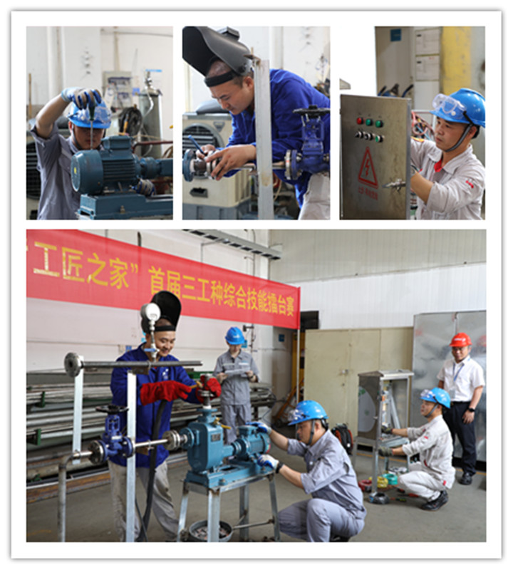 本次擂臺賽是華峰“工匠之家”年度品牌活動的重要組成部分,采用三工種聯(lián)合團隊賽,旨在通過創(chuàng)新競賽形式,培養(yǎng)多工種間的協(xié)作能力,提升員工的綜合技能水平。比賽圍繞“自動液位控制工業(yè)泵”項目展開,涵蓋了鉗工、焊工和電工三個關(guān)鍵工種。參賽團隊需在規(guī)定時間內(nèi),通過精準的配合,完成從設(shè)備焊接、設(shè)備組裝到變頻自動控制液位的全過程。