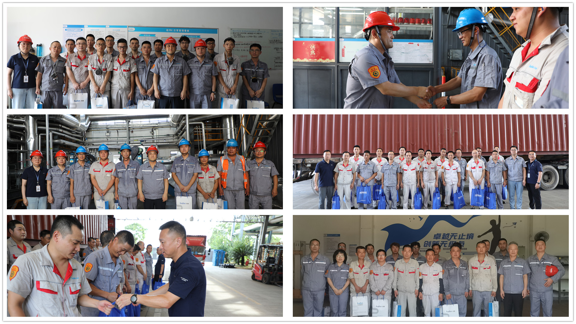 首先,總經(jīng)理朱炫相帶隊,與工會主席李娟及制造部經(jīng)理葉國建一同抵達(dá)化學(xué)公司組件E車間。組件現(xiàn)場,操作員們停下忙碌的工作,額頭的汗珠仍舊不時地掉落。朱炫相總經(jīng)理與組件員工一一握手,送上公司慰問品的同時,并向員工們親切地問好。朱總表示,大家要注意身體,公司十分關(guān)心大家高溫下的勞動,一定會將員工關(guān)懷落實到實處。隨后,朱總一行還慰問了動力供熱車間。在化學(xué)倉儲現(xiàn)場,營銷總監(jiān)蔡以勇和工會副主席吳海峰,對每一個戶外裝車點進(jìn)行慰問,為高溫下忙碌的一線員工,送上一份份清涼的夏季慰問品和最貼心的問候。