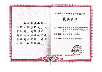 11月28日,2025年度中國(guó)紡織工業(yè)聯(lián)合會(huì)科學(xué)技術(shù)獎(jiǎng)勵(lì)大會(huì)在北京人民大會(huì)堂隆重舉行,對(duì)推動(dòng)紡織行業(yè)科技進(jìn)步的優(yōu)秀成果進(jìn)行表彰。由華峰重慶氨綸有限公司、華峰化學(xué)股份有限公司聯(lián)合東華大學(xué)、西南大學(xué)共同研發(fā)的“大容量多孔高速氨綸智能制造關(guān)鍵技術(shù)開(kāi)發(fā)及產(chǎn)業(yè)化”項(xiàng)目(以下簡(jiǎn)稱(chēng)“項(xiàng)目”),憑借在氨綸生產(chǎn)全鏈條的突破性創(chuàng)新,榮獲科技進(jìn)步獎(jiǎng)一等獎(jiǎng),成為引領(lǐng)氨綸行業(yè)向綠色化、智能化轉(zhuǎn)型的標(biāo)桿成果。