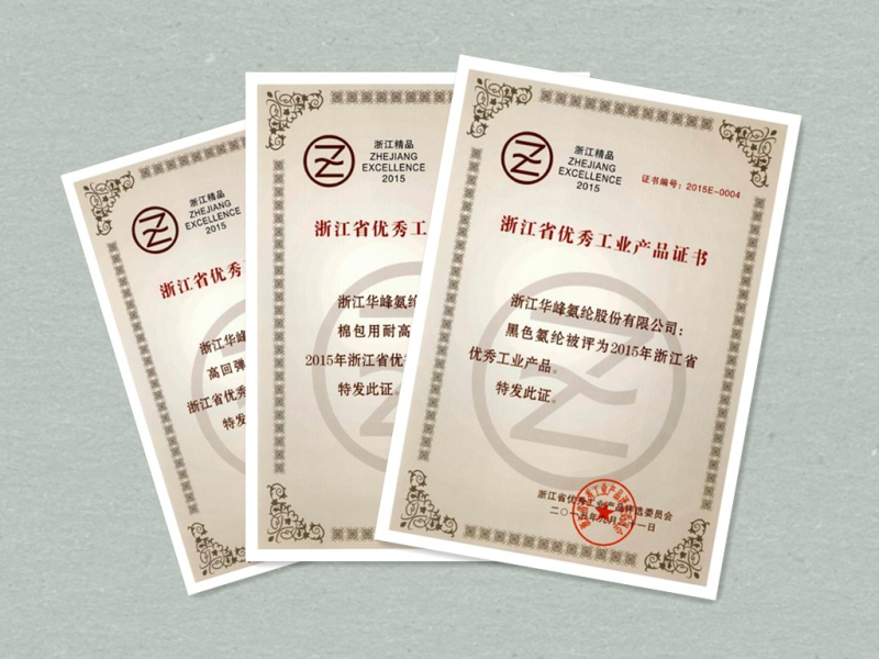 為提高浙江工業(yè)產(chǎn)品社會(huì)知名度和附加價(jià)值,近日,浙江省優(yōu)秀工業(yè)產(chǎn)品評(píng)選委員會(huì)評(píng)選并公布了“2015年浙江省優(yōu)秀工業(yè)產(chǎn)品”名單,華峰氨綸公司黑色氨綸、高回彈經(jīng)編氨綸和棉包用耐氯耐高溫氨綸三項(xiàng)產(chǎn)品榜上有名。