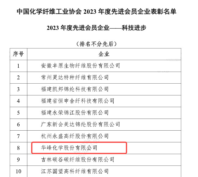 2月26日,中國(guó)化學(xué)纖維工業(yè)協(xié)會(huì)公布年度先進(jìn)會(huì)員企業(yè)名單,華峰化學(xué)公司榜上有名。本次先進(jìn)會(huì)員考評(píng)涉及科技進(jìn)步和科技創(chuàng)新等四個(gè)領(lǐng)域,公司以突出的技術(shù)創(chuàng)新成果,斬獲“科技進(jìn)步類(lèi)先進(jìn)會(huì)員”榮譽(yù)。