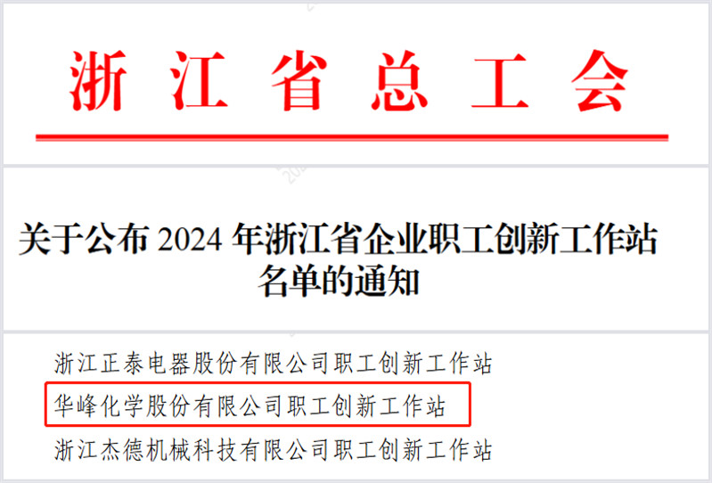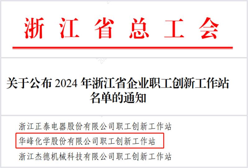 近日,浙江省總工會(huì)公布省級(jí)企業(yè)職工創(chuàng)新工作站名單,華峰化學(xué)股份有限公司榜上有名。